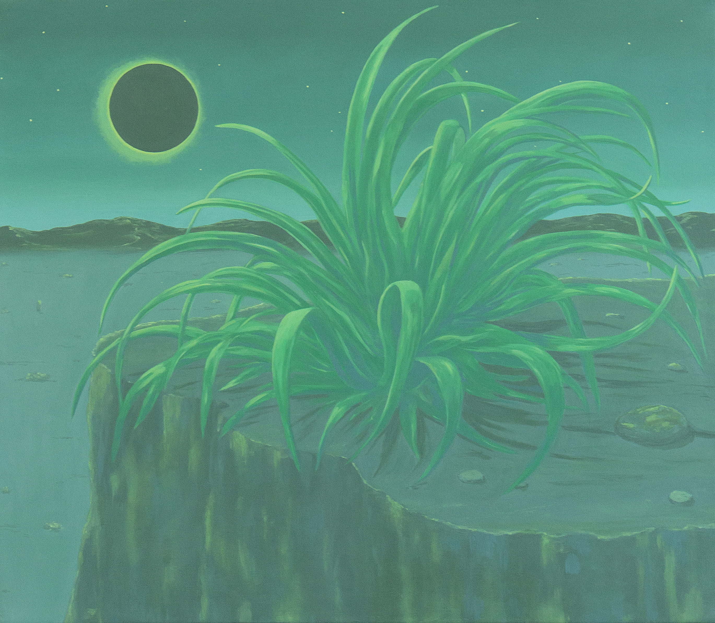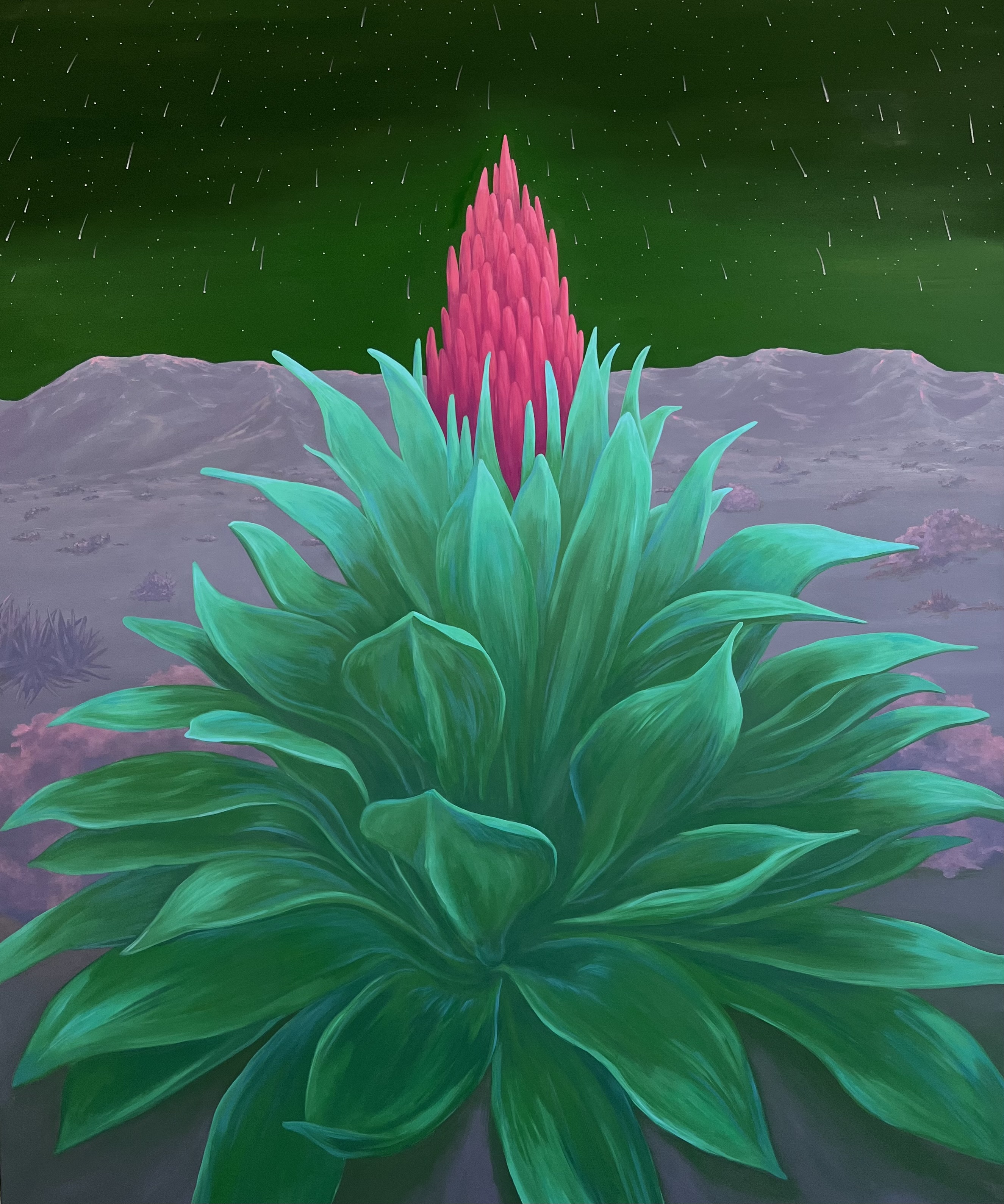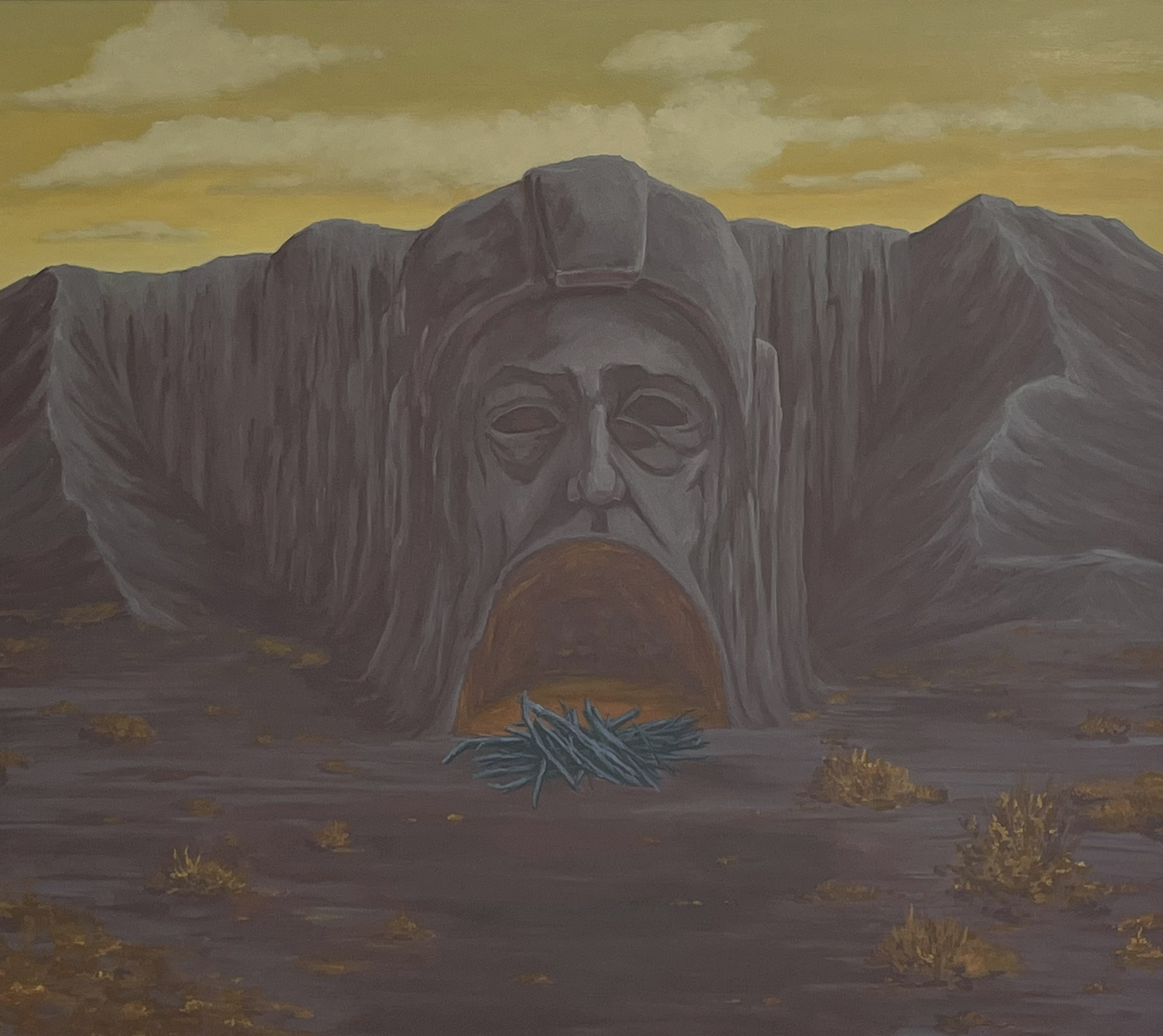 Ortiz’s surrealist landscapes reference the cultural divide she and so many second generation Americans feel. Their narrative nature references ancient Aztec and Mayan mythology while reflecting back on current and personal events. Out of the ruins of their previous existence, these new creatures inhabit a borderland between memory and imagination. Dualities define them; they give them shape. Weaving together invented spaces with references to actual places, the paintings take both a familiar tone and a sense of the uncanny.