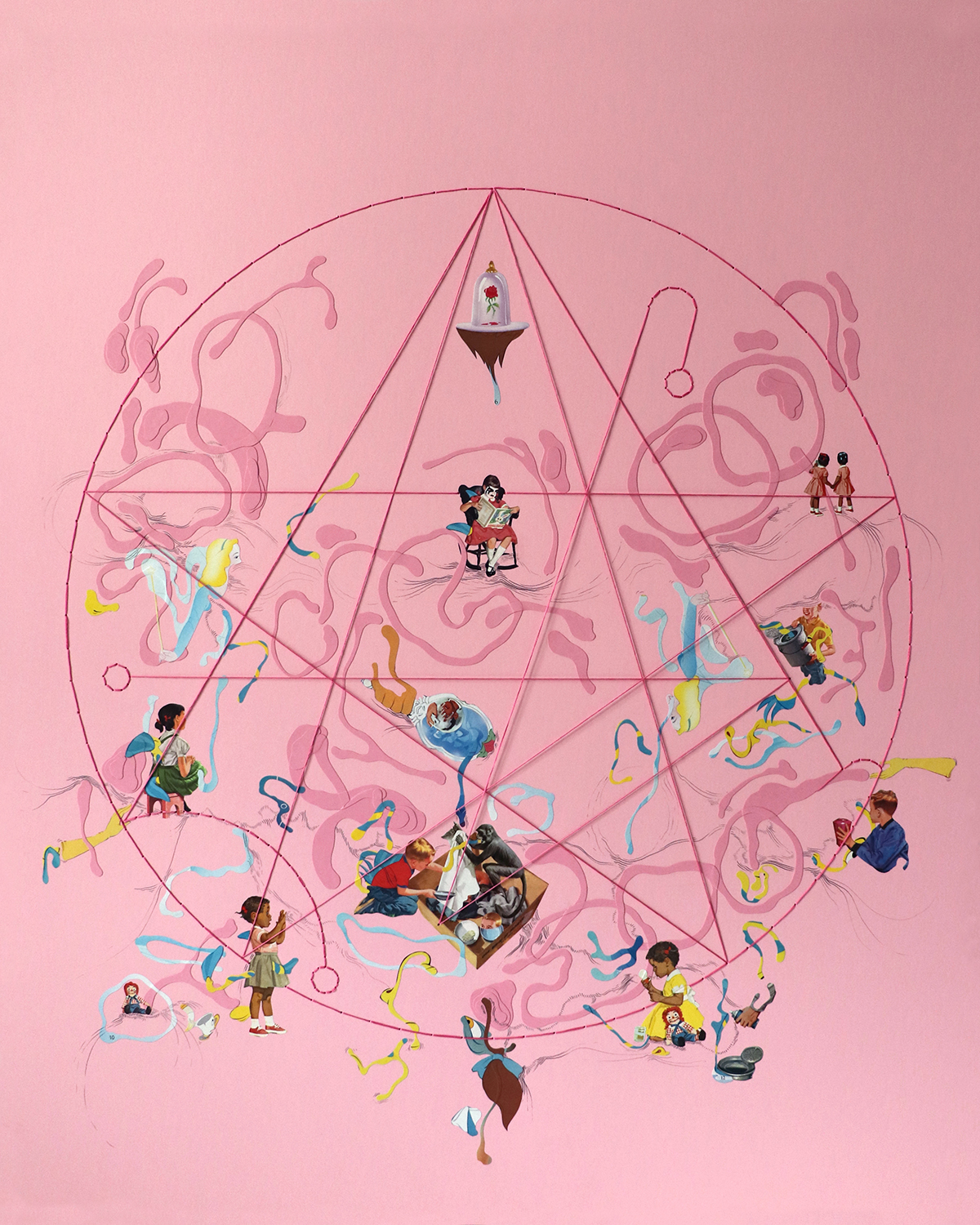 Catalina Schliebener Muñoz, is a Sudamerican, Chilean-born visual artist who works primarily with collage, installation, and murals, Schliebener’s work draws on images, objects, and narratives associated with childhood and explores gender, sexuality, and class. Their work has been exhibited in Museo de Arte Contemporáneo (Santiago, Chile), Leslie-Lohman Museum of Art (New York, NY), Bronx Museum of the Arts (New York, NY), Boston Center for the Arts (Boston, MA), Centro Cultural de España (Santiago, Chile), Centro Cultural Recoleta (Buenos Aires, Argentina), Center for Books Arts (New York, NY), Catalyst Arts (Belfast, Northern Ireland), Tiger Strikes Asteroid (Brooklyn, NY), Hache Galería (Buenos Aires, Argentina), Galería Jardín Oculto (Buenos Aires, Argentina), Galería Metropolitana (Santiago, Chile), and Bureau of General Services-Queer Division (New York, NY), among others.