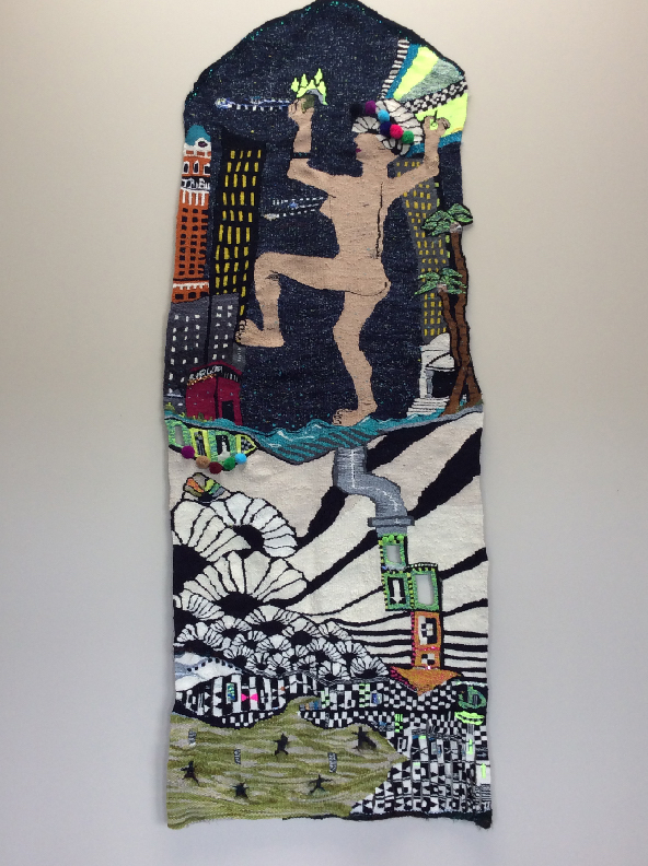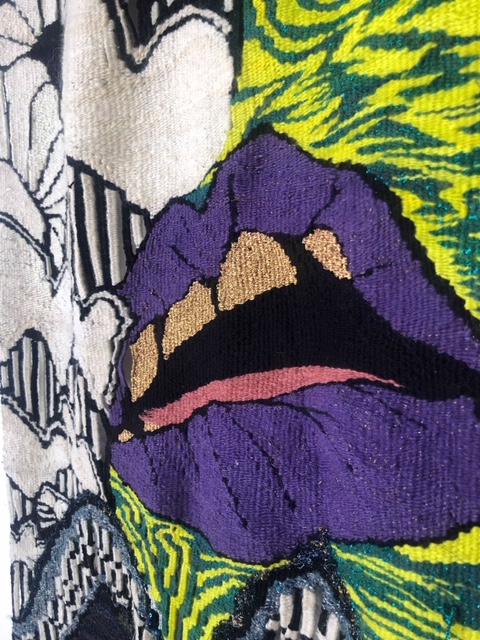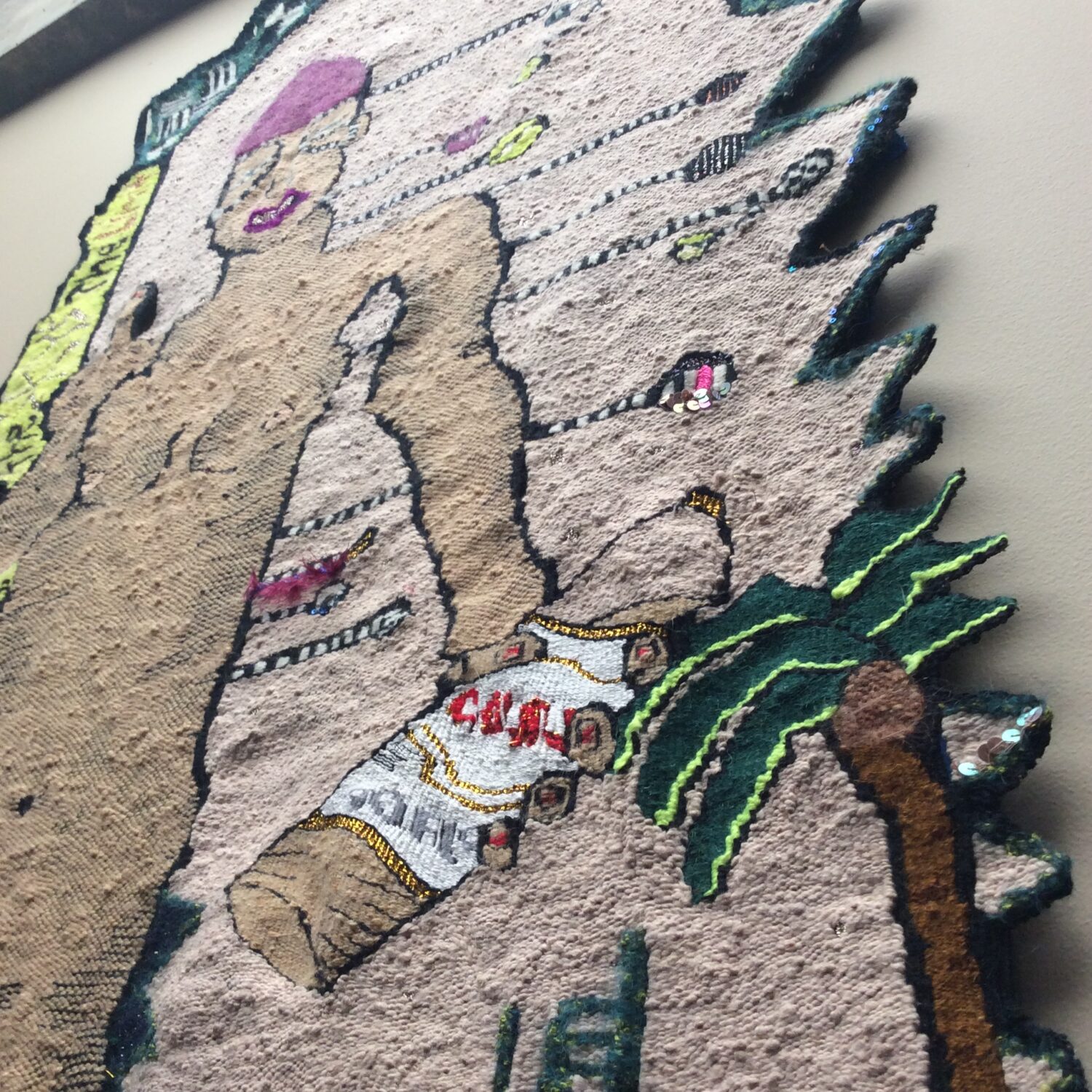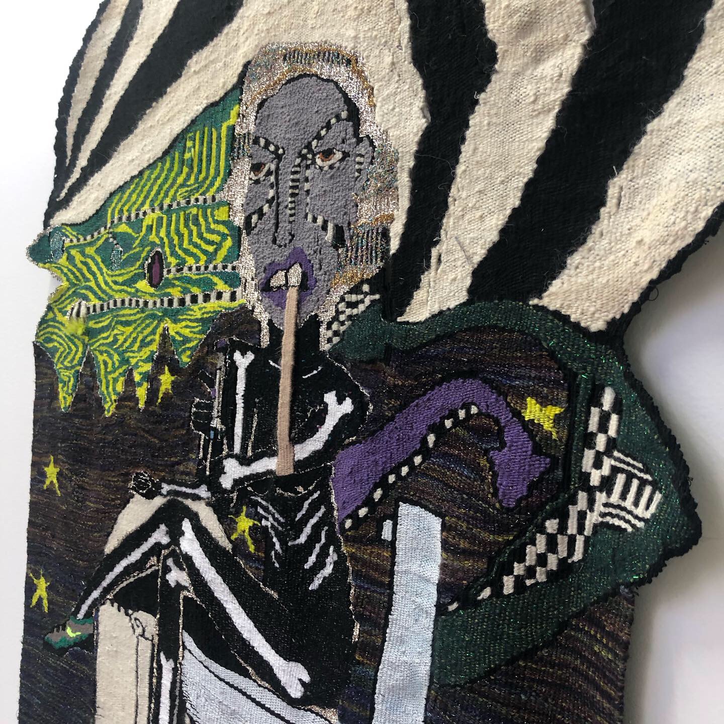 When Dance Doyle found tapestry, she had been delivered. Weaving structures became a way to channel difficult emotions into something tangible that could not be expressed with words. Turning tapestry into a visual journal about her past struggles with homelessness and addiction became transformative. Since then, Doyle has been wildly invested in this work. Today, Doyle articulates stories through shaped, large-scale, urban-contemporary tapestry. She became self-taught through trial, error, and taking risks. This has allowed her the freedom to invent her own techniques, flipping traditional forms of tapestry to follow infinite directions, breathing into the work a living pulse. For the last 13 years, Doyle has been creating large-scale, urban contemporary tapestry to which she was introduced while attending San Francisco State University.