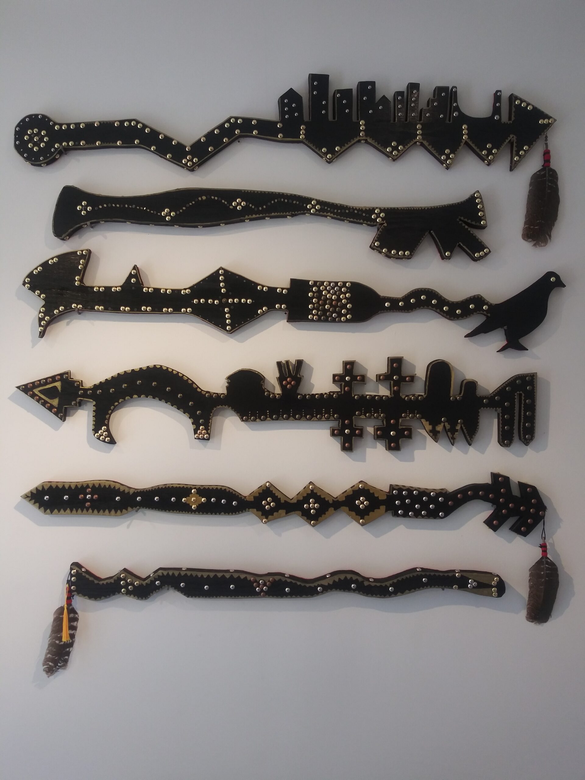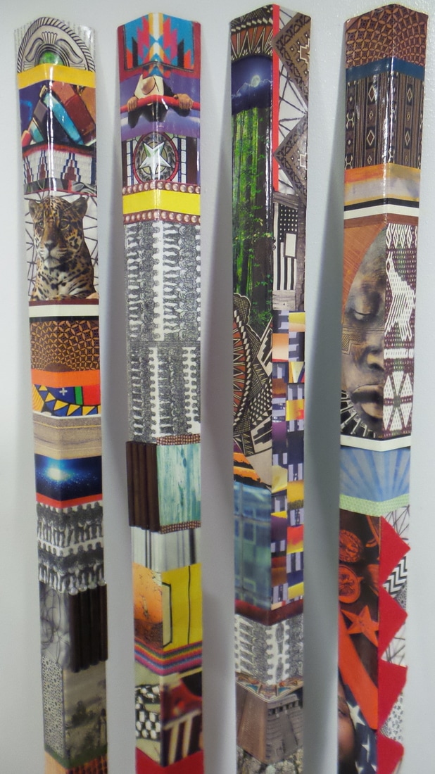 Dennis RedMoon Darkeem creates sculptural work based on the familiar objects that he sees during his daily travels. Darkeem is inspired by elements in existing architecture and everyday items found within the home. He ultimately set out to express a meaningful story about events in his life and those found with the communities in which he works. Darkeem utilizes a wide breadth of materials and processes for the creation of elaborate multidisciplinary work. The versatility in the work allows the viewer to have a rich experience as the eye uncovers the multiple layers that often characterize mixed media art.