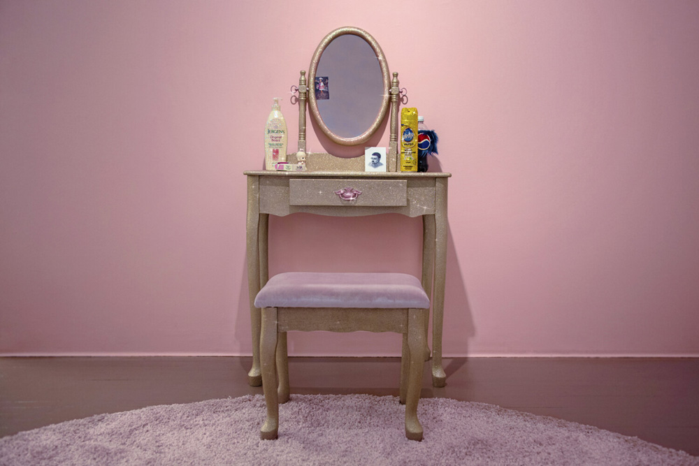 My work celebrates my desires and iconographies from early childhood. Love letters to my mother, pop culture icons, queer night life and the magic of movies. A deployment of these personal and pop symbols is actually a deployment of the self. Blending video, photography, performance and installation practices, I queer surfaces by drenching them in candy-coded colors, fabrics, and textures: shades of pink, crystals, sequins, glitter, vinyl and fur. The act of queering re-contextualizes them through a fantasy feminine outside the reality of their source material. As a survival strategy for the fear and shame I felt as a queer adolescent, I followed models of femininity outside of myself until I could find security in my own.