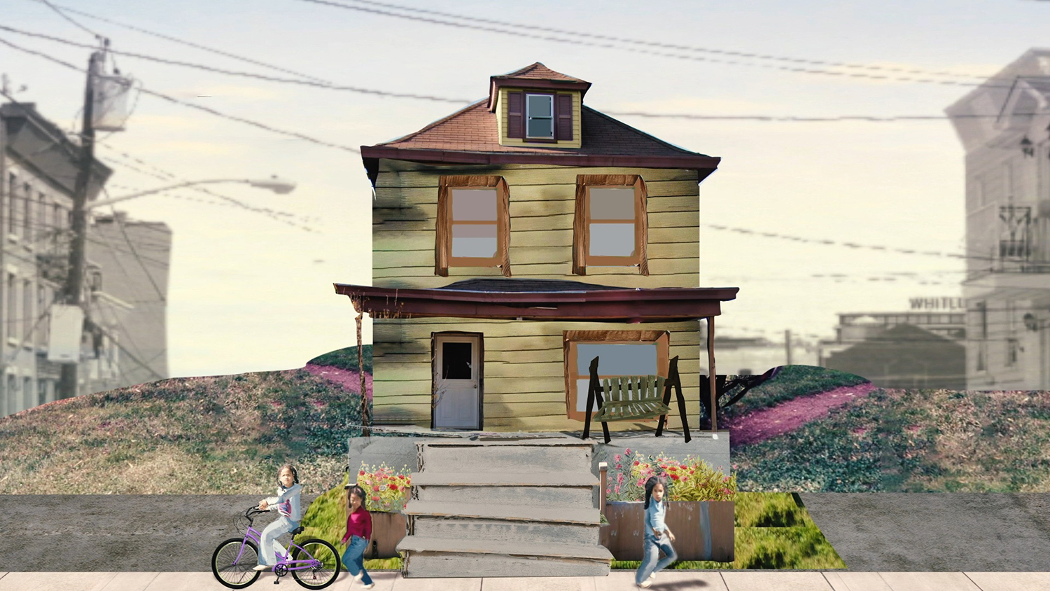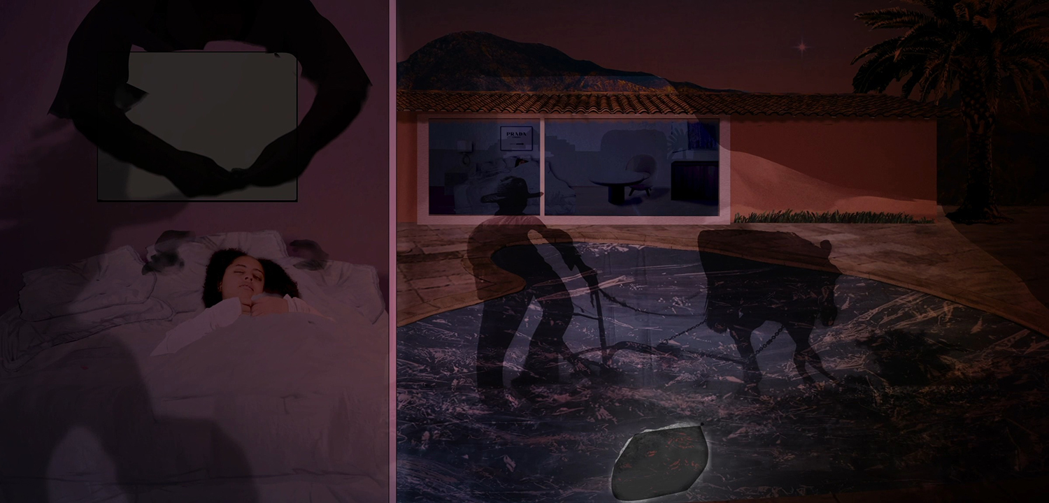 Through surreal animated collages, Tatiana Florival builds imaginary worlds and scenes that contemplate society, culture, and other mystifying aspects of human life: death, nature, and the relation between the mind and the body. Her videos take place in complex physical sets she constructs of rooms, houses, and outdoor spaces. She assembles footage from clips of live actors (often herself) in these spaces, animated drawings and photography, and special effects. Florival’s films are equally anchored in the recognizable and the impossible. To create her fictional worlds, she observes, imitates, and interprets cultural patterns from our physical world, and translating those observations into imagined landscapes, characters, and stories. Florival tells stories with characters that already exist in our mental landscapes in a journey to understand, and suggest explanations for, natural yet incomprehensible phenomena.