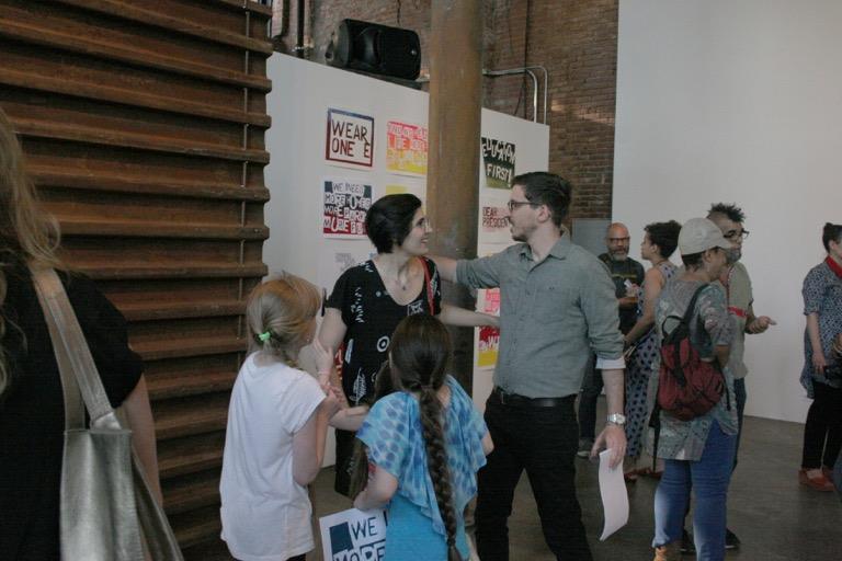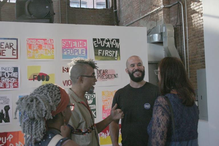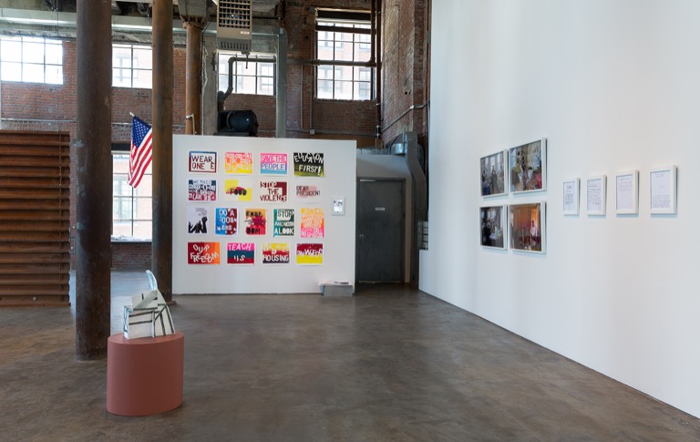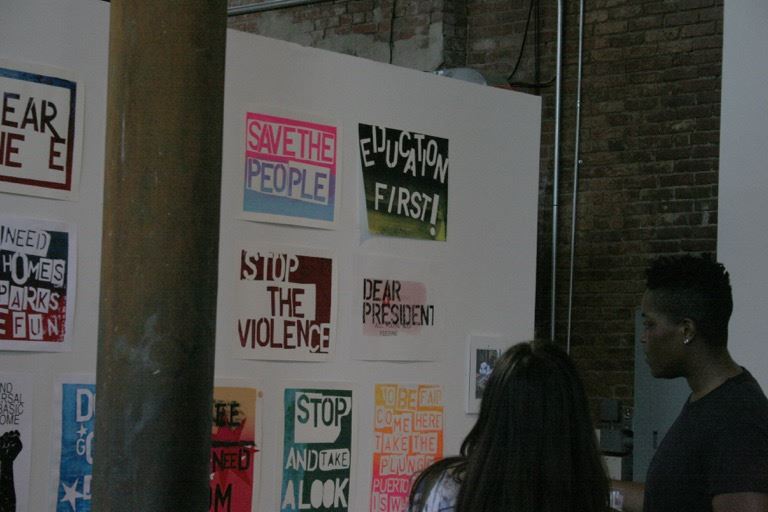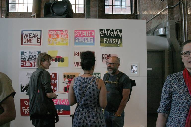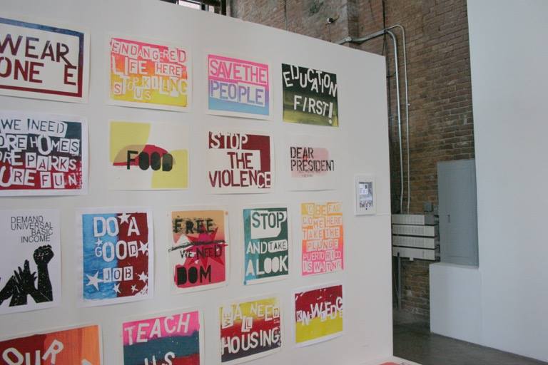 Exhibition artists have produced projects that create space for public participation in a broken election system. Mildred Beltré & Oasa DuVerney of Brooklyn Hi-Art Machine have designed radical posters about the 2016 election with their neighbors in Crown Heights, Brooklyn where they have led a community forum including collaborative art making since 2010. As part of her 12-year project I Wish to Say, Sheryl Oring has mailed thousands of letters addressed to sitting presidents and candidates running for office that are dictated and tapped out on a vintage typewriter thus giving voice to people to air their frustrations or freely express their hopes, dreams, and desires.