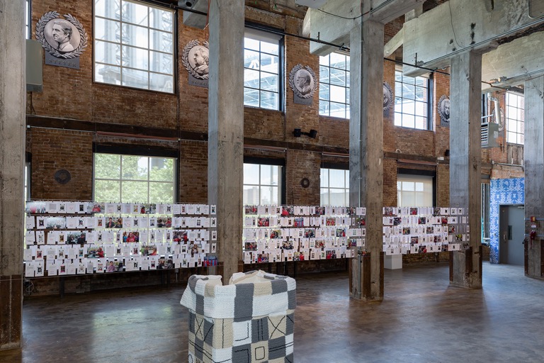 New artist’s projects included in the show take into account timely subject matter underscored during the election year. Peggy Diggs’s project Heirloom considers the fairness of ballot design with a handcrafted “cozy”. Looming large over Smack Mellon’s space, the likenesses of big money donors made by Lauren Frances Adams are inspired by the portrait head roundels of historic lawmakers in the US House of Representatives chamber. Formed in 2015, Ben Pinder’s The Mythic History of America, For America Super PAC is lawfully recognized here in drawings and genuine articles.